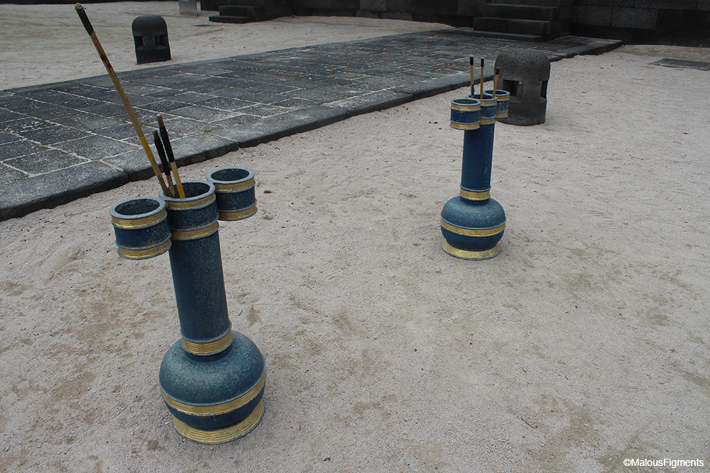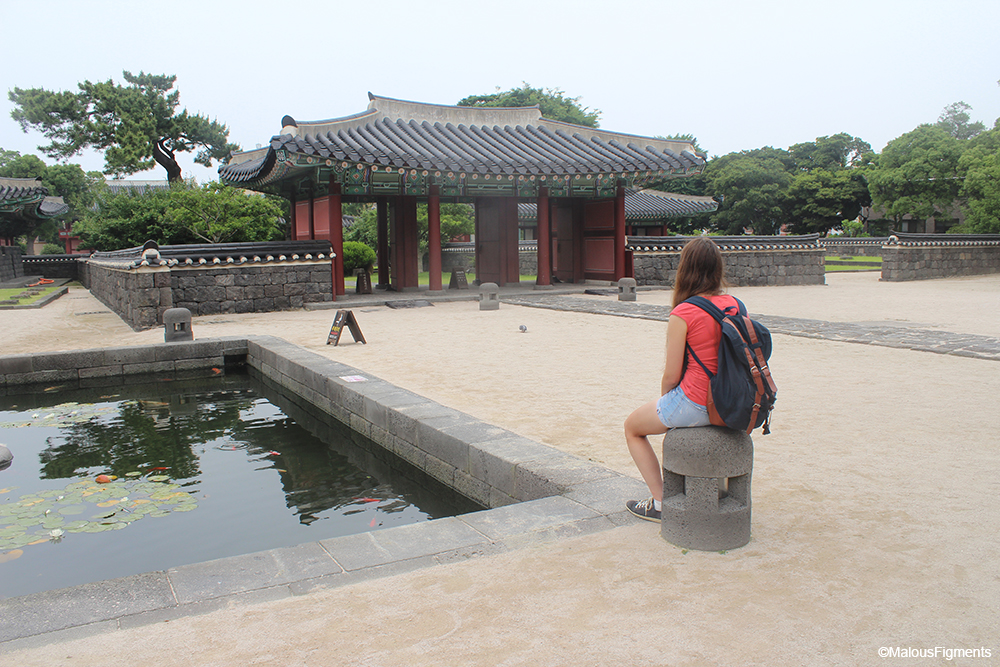 Our next stop was the Jeju Mok; old government buildings. Like all traditional buildings in Korea, these were coloured dark red and had decoration near the roof. Even though the buildings itself looked similar to the ones in the palace, it was still nice to see. The entry fee was only 800 won for me since they consider me as a child in Korea (age 13-24). There were also two traditional games that kids used to do. One of them is throwing sticks and the other is a reversed kind of see-saw. We tried them both but only figured out how to successfully use the reversed seesaw.