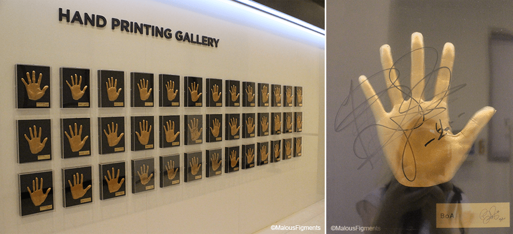 There is no entry fee to get into this building, but it’s only purpose seems to be selling merchandise. The first floor is the welcome lobby. From there you can take escalators upstairs which are surrounded by television screens on which music videos play. On the second floor, you find a celebrity merchandise shop.