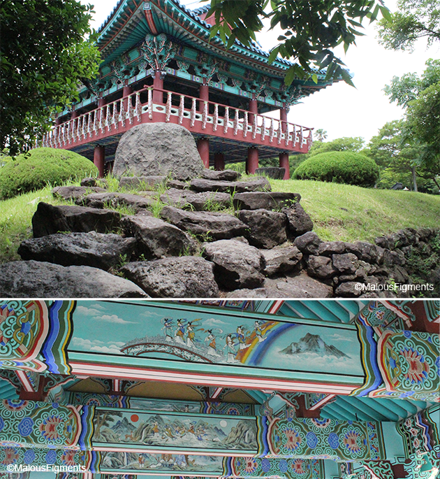 The story of the nymphs has been pictured on the ceiling of the pavilion. The Seonimgyo bridge which initially drew my attention when we were looking for touristic things has the 7 nymphs on its sides as well. Sadly we couldn’t get any nice view of the bridge itself, we only got the chance to cross it.