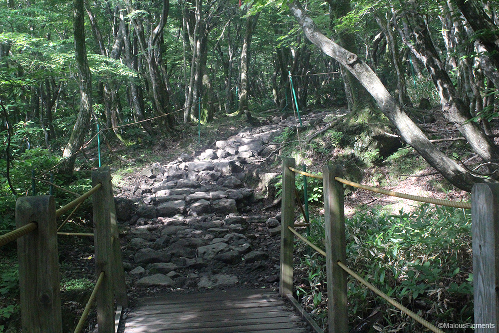 The path started out with stones and it continued like this for the following 4.1 kilometres. Imagine big randomly shaped stones that have been randomly thrown down in the middle of a path of smaller stones. Meanwhile, the route constantly went uphill since… you know… we were climbing a mountain. In the beginning, the stones didn’t seem to be exhausting, but rather annoying. We had expected wooden boards, not trails with stones. Luckily there was a lot of shade but it was humid. It felt really great to walk in nature. However, rather than looking around, we were busy looking down and watching our steps.