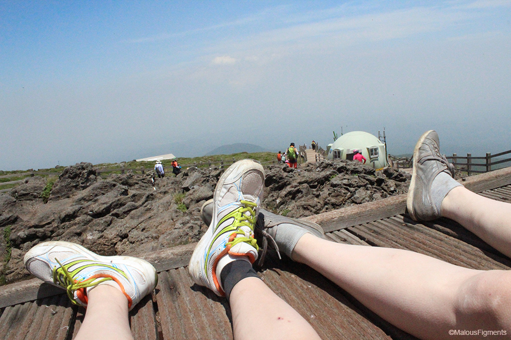 Right as I’m writing this from our hotel room it feels as if I am walking on fire with every step that I take. There is no position to lie in which does not hurt. Tomorrow we plan to go to Udo island, but only if we can walk. We have never smelled so bad in our lives. We will never ever go up the Hallasan Mountain again. After all, we can now already say that we climbed to the top of the highest mountain in Korea, but one time is more than enough.