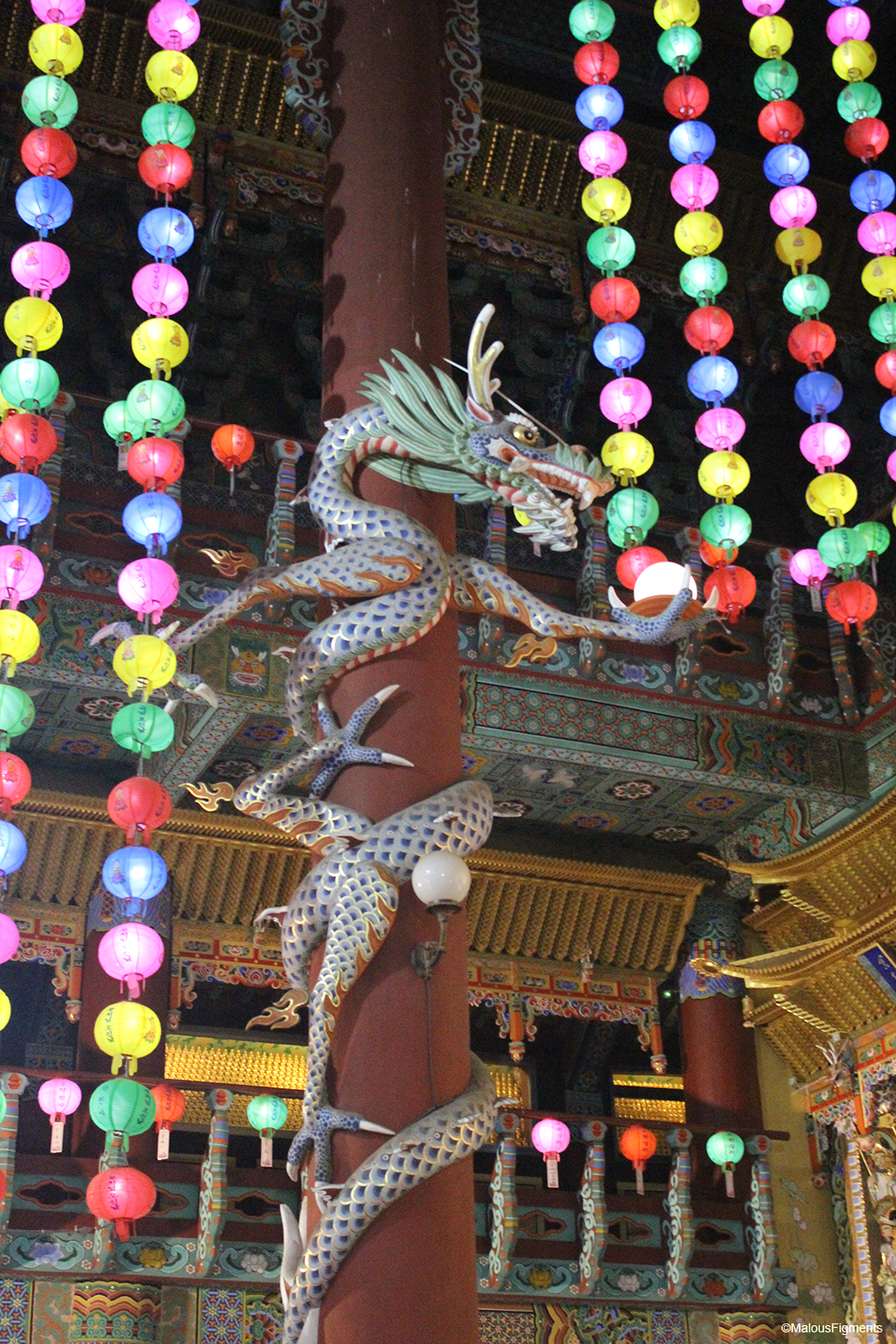 A few weeks ago, Buddha’s birthday was celebrated in this temple. We think that this is why there were so many lampions. Every single one of them carries a wish that given by the people.