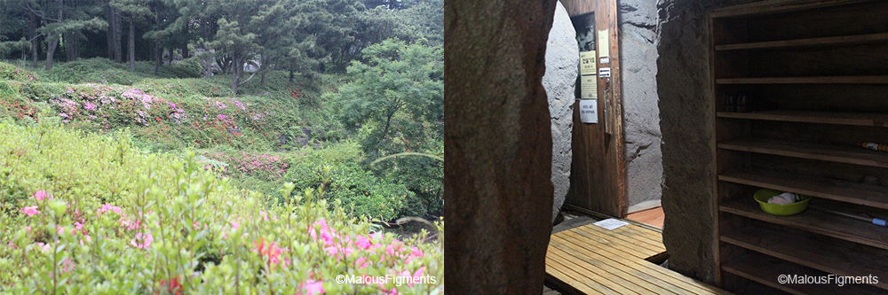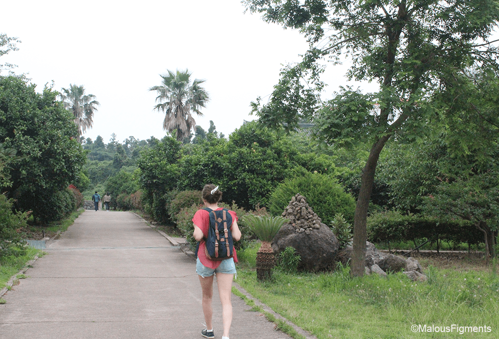 As we didn’t enter the temple through the main entrance, we decided to take it as our exit route. The stairs lead you back down past a pond with a small waterfall. This water is believed to be carrying medical qualities. If you are to enter the temple through the main entrance, you will first pass a pile of stones. These stones are stones of luck. It is something we’ve seen more than once on Jeju.