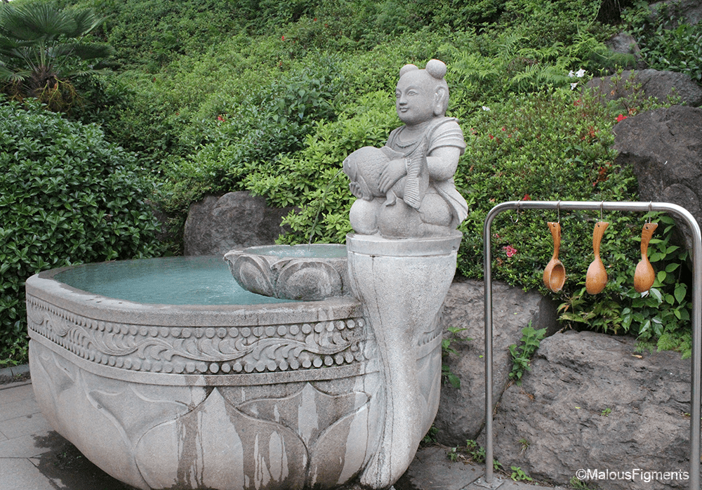 Outside the temple, there are three wells where you can drink clean mountain water. Near the Cheonjeyeon waterfalls, we tried out a water tap with water from the mountains as well. We could taste that it came from nature then, but the water at the temple is really clean.